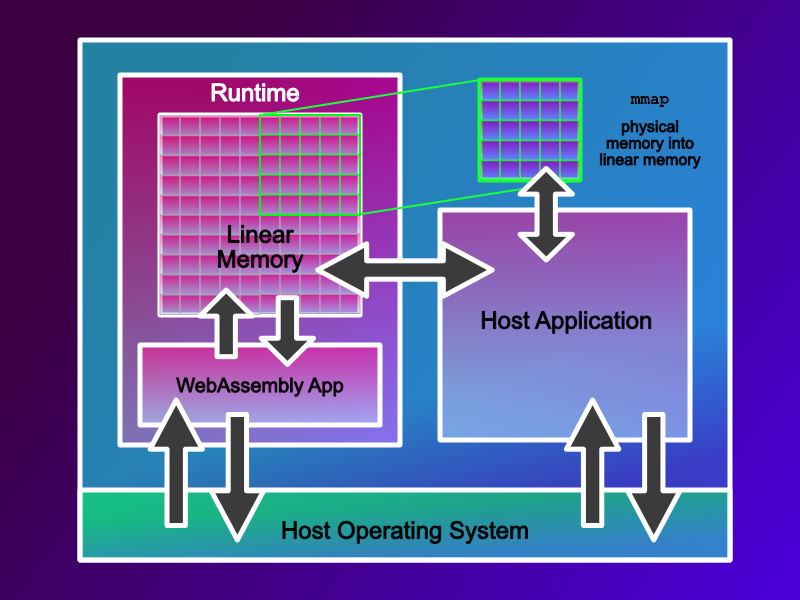 The issue of getting data into and out of a WebAssembly sandbox as fast as possible is something which doesn’t just impact embedded systems, it’s applicable to many. So, how do you do it? - Well the answer is surprisingly easy. Let’s think about our limitations; the host can read and write linear memory, the Wasm application can read and write linear memory but cannot access any other memory space. The answer, therefore, is to share access to Linear memory.